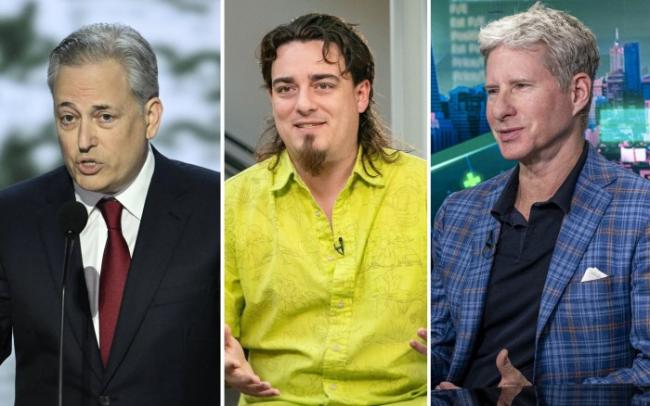 川普政府的加密貨幣總管大衛·薩克斯;Anduril聯合創始人帕爾默·拉奇;Ripple聯合創始人克裡斯·拉森圖片來源:ANDREW CABALLERO-REYNOLDS/AFP/GETTY IMAGES, KYLE GRILLOT/BLOOMBERG, DAVID PAUL MORRIS/BLOOMBERG
