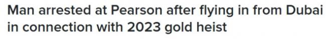 皮爾區警方表示,壹名43歲男子因涉嫌參與加拿大史上最大規模的黃金盜竊案被捕。該男子從迪拜飛抵多倫多皮爾遜國際機場後,當場被警方拘捕並正式起訴。