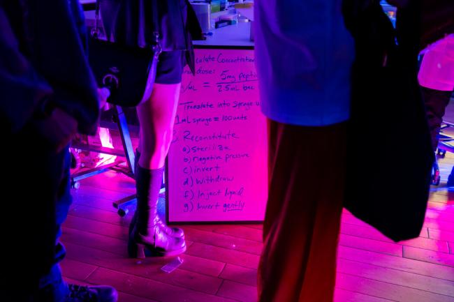 舊金山Frontier大廈舉辦的壹場肽派對設有壹個自己動手調配肽類的工作坊,並有DJ現場表演助興。 Jason Henry for The New York Times