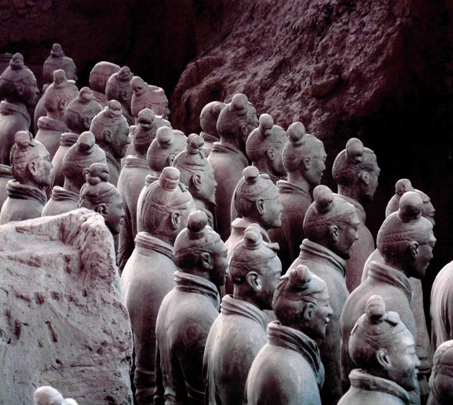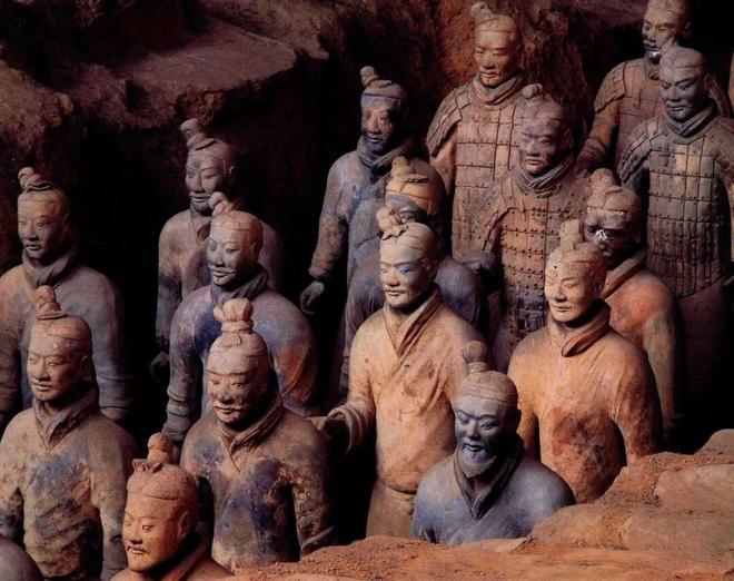 但是很快就有人反應過來,這莫不是模仿得兵馬俑的造型?畢竟只要去過兵馬俑博物館參觀的人,應該都會對大量梳著右傾發髻的秦俑印象深刻。因為這種並不居中對稱的造型,拾分違反我們對於古人束發的印象,且在兵馬俑博物館現場,這樣的秦俑數量又拾分龐大。