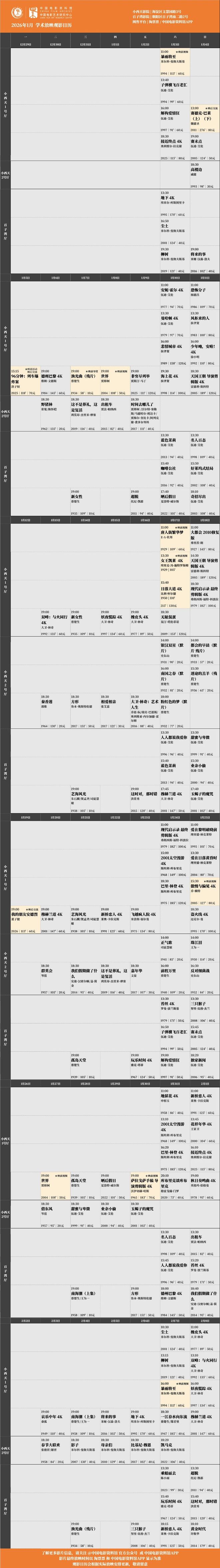 所有场次均可在淘票票、中国电影资料馆APP购票,具体排片见末图,祝大家观影愉快。??