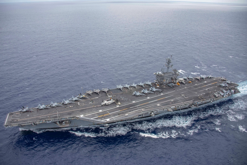 中东战云密布,美军紧急将原本部署于印太地区的林肯号航空母舰(CVN 72)调往中东,以填补战力空缺并威摄伊朗。 图为林肯号先前在太平洋海域执行演训的壮盛军容。 (图取自美军DVIDS网站文件照)