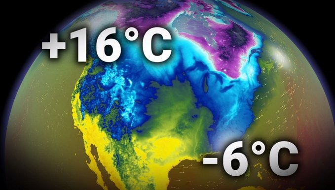 根据天气网的报道,这股疯狂的天气变化源自一个庞大的高气压系统,它不顾一切地“闯入”北极,把温暖的气流强行带入加拿大。而与此同时,佛罗里达的温度却跌入冰点,真是让人直呼“这是什么鬼天气”。