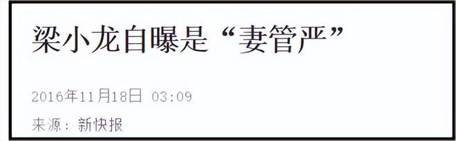2016年,在《全家好拍檔》節目現場,梁小龍更是自曝是“妻管嚴”,他說“說實話,我天不怕地不怕,最怕我老婆和我岳母。”