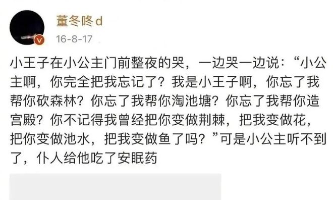 那条小公主不理小王子的博文现在看来也还是很甜很甜,那个时期像这种 多金又纯情恋爱脑的“霸总”不多了。