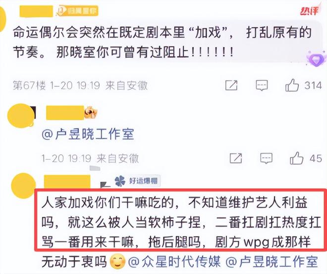 大家纷纷斥责工作室没有制止,并扬言“二番扛剧、扛热度、扛骂,一番用来干嘛”。