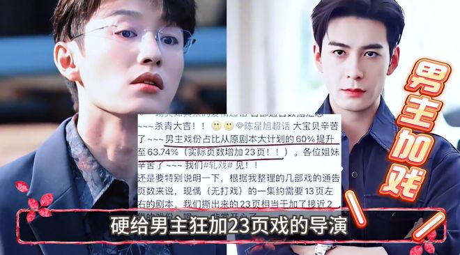其实之前就有网友扒出,疑似陈星旭的粉丝,在《轧戏》拍摄期间,发文表示快杀青时,导演给陈星旭加戏,将男一号戏份拉到60%以上,甚至戏份多达23页(网传)。