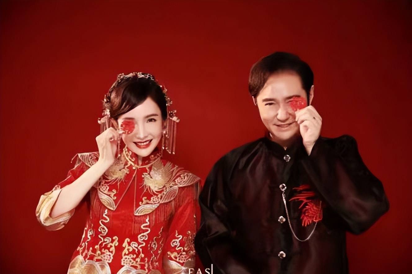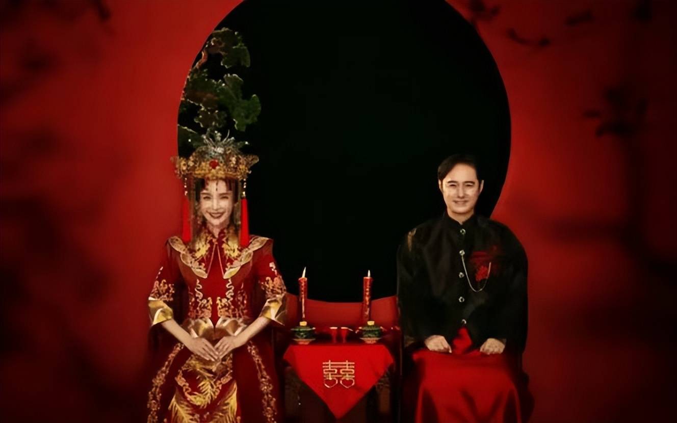照片有中西式婚紗照,馮雷結婚的時候已經43歲,所以他是娛樂圈晚婚的代表。