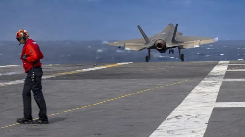 2026年1月9日,一架美国战机从“林肯”号航母的甲板上起飞。