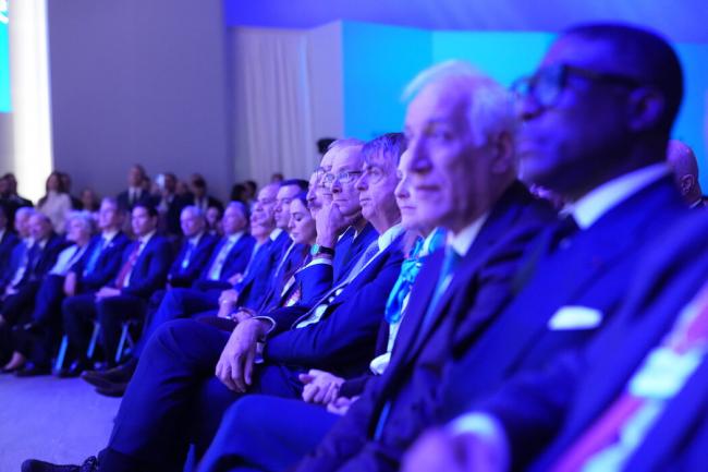 周三,在达沃斯聆听川普总统演讲的与会者。 Doug Mills/The New York Times