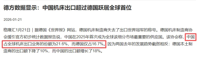 中国机床出口,竟然超越德国,登上世界第一了。这比新能源汽车出口,超越日本(专题),登上世界第一,还要震撼。为什么呢?因为机床是一切工业之母。