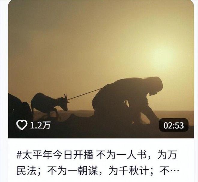 信源:7.46 07/17 goq:/ g@O.xS # 太平年今日开播 不为一人书,为万民法;不为一朝谋,为千秋计;不为一瞬安,为永世平# 太平年