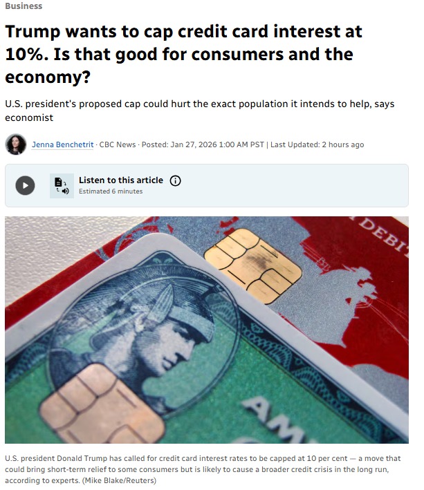 (加西網綜合)特朗普擬將信用卡利率上限設為10% 專家警告可能引發信貸危機 加拿大消費者影響有限