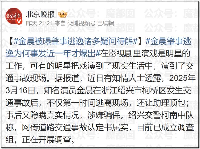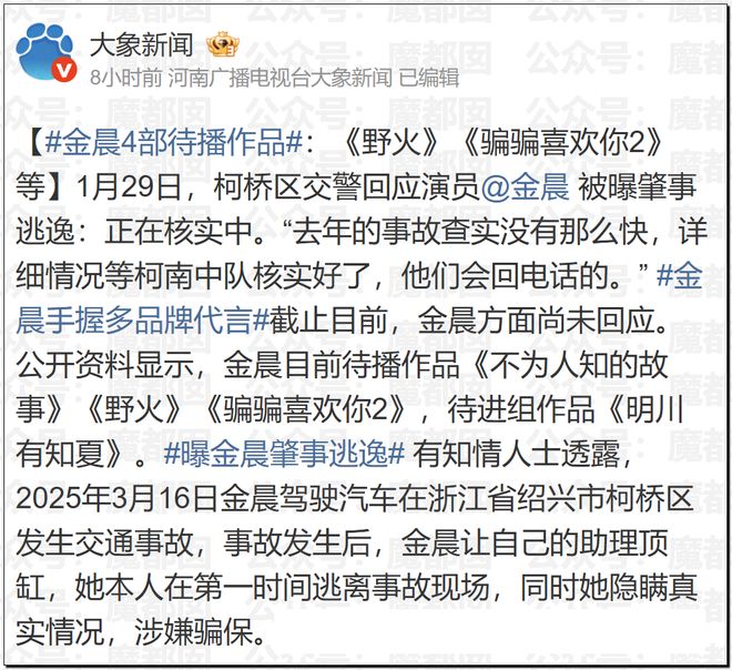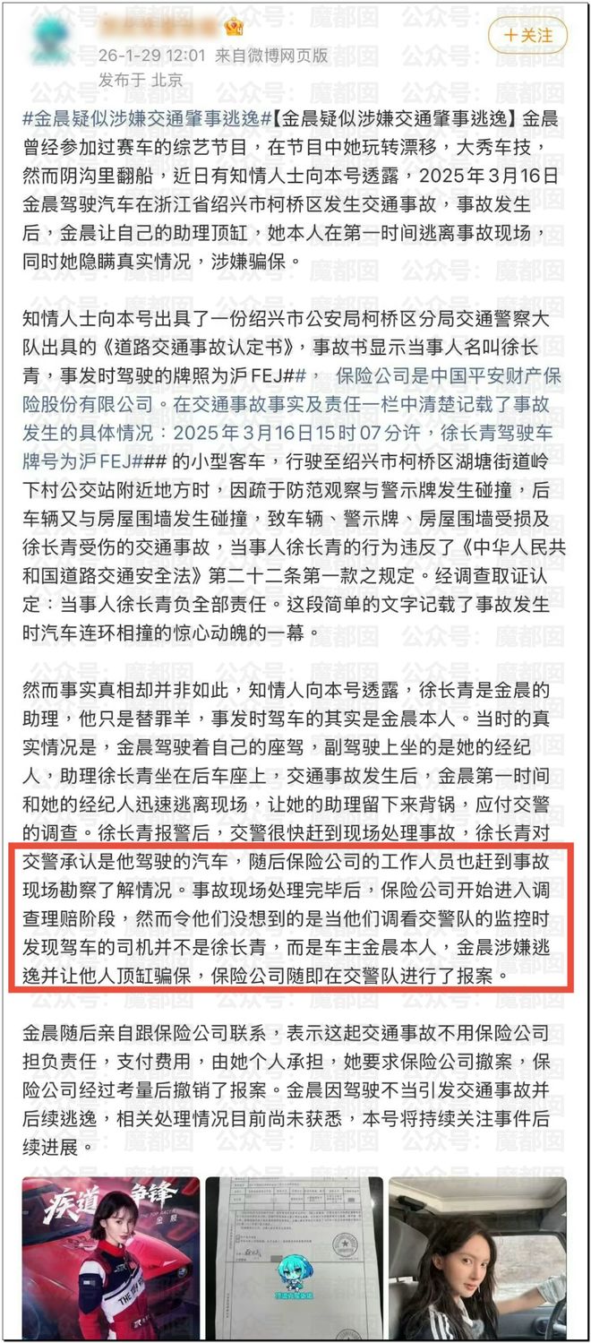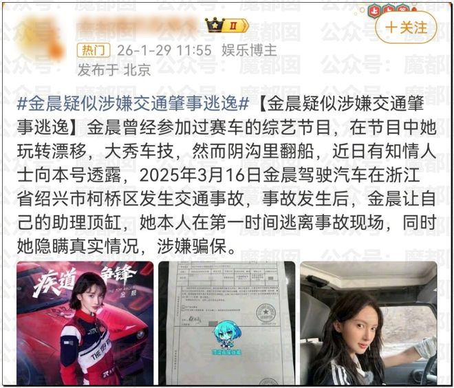惊讶!顶流女星金晨要凉?为何交通肇事后紧急逃逸找人顶包?现场照片流出!