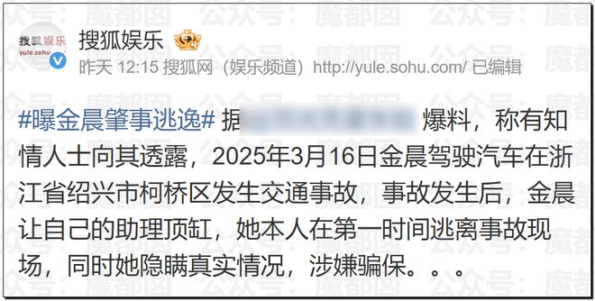 如果金晨逃逸顶包是真的话,那么可能凉得比张雨绮更早。