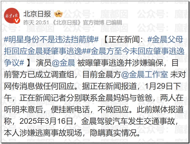 金晨父母也没有回应: