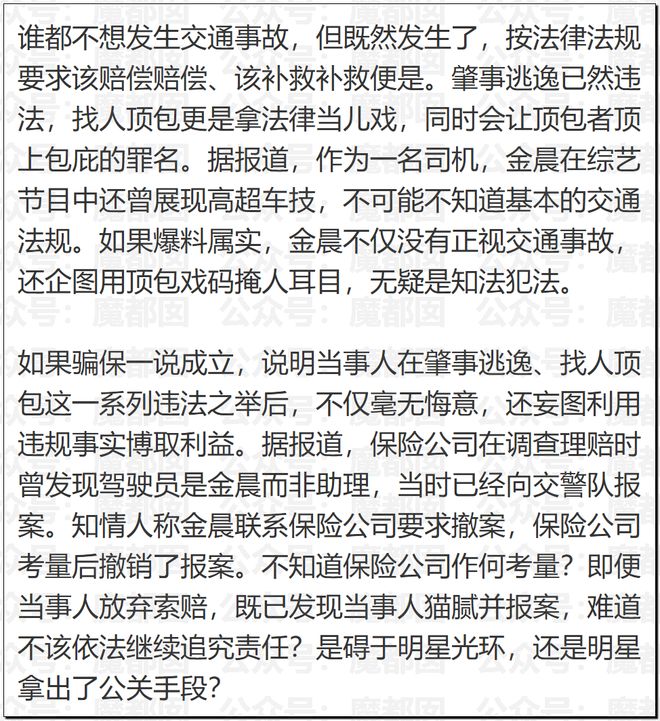 问题不在于这个事故,这个事故本身是非常轻微的,主要在于这个明星如此明目张胆的违法到底是什么在撑腰?