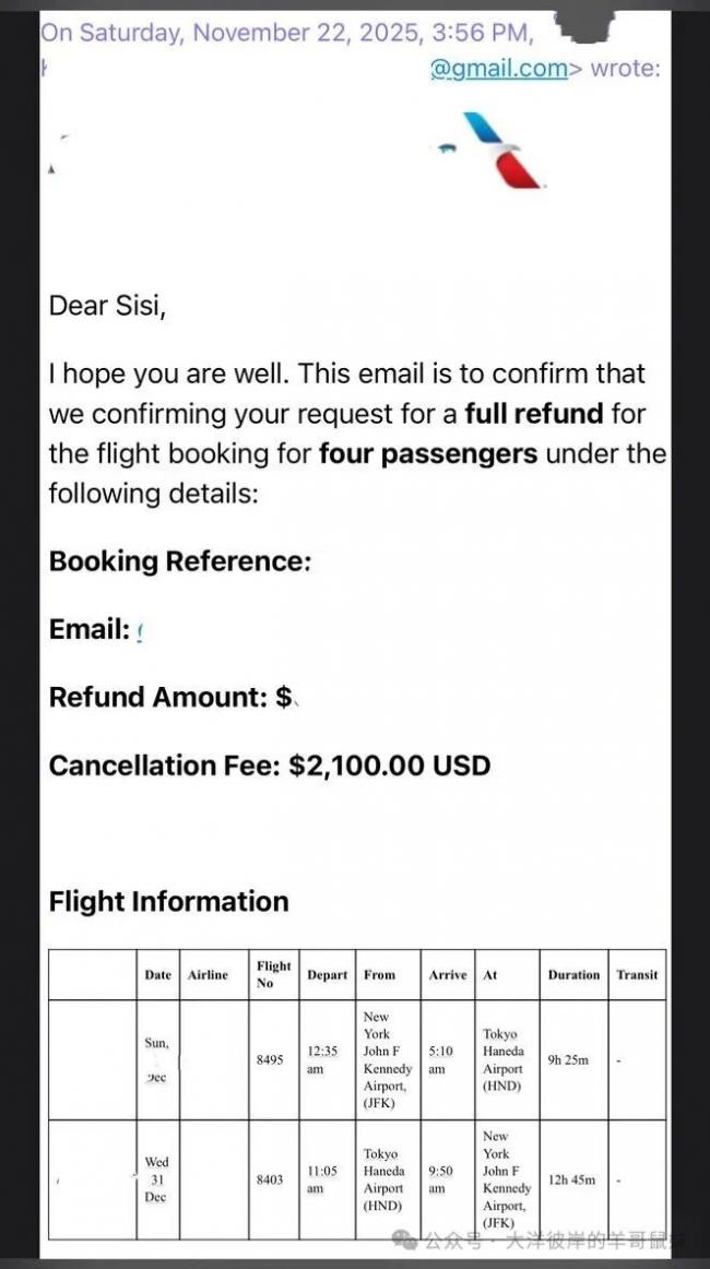 本來他壹開始告訴我們退票是每個人收450美金,壹共1800元,最後不知道為什麼變成2100元,而這2100我們壹直認為會在總額裡扣除後收到余額。