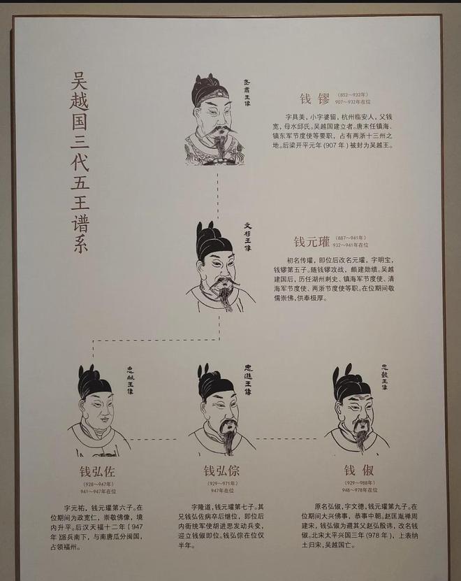 他去世后,儿子钱元瓘、孙子钱弘佐相继继位,都一直遵循他的祖训,坚守和平发展的道路。