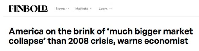 美国正处在比2008年危机"更大规模崩盘"的边缘