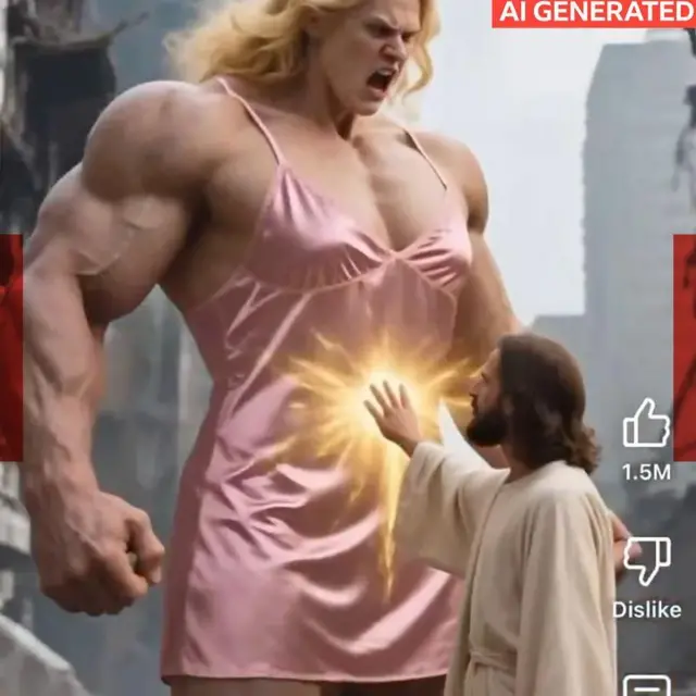 图像来源,SOCIAL MEDIA图像加注文字,泰奥多表示,社交媒体上的某些AI劣质内容怪异到令人难以理解。