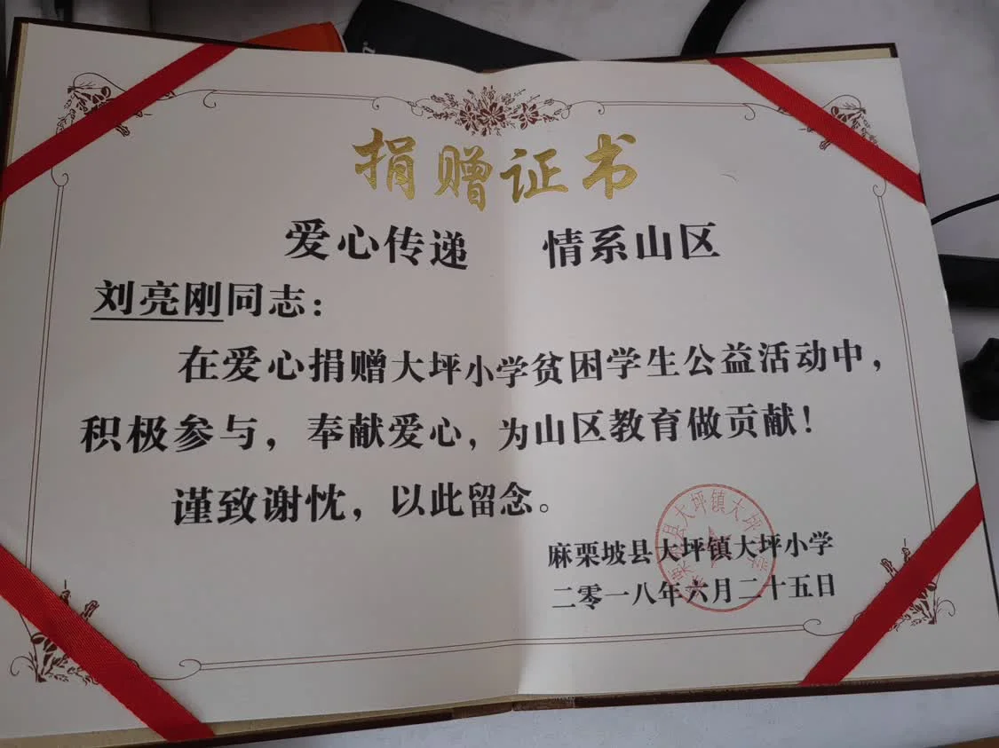 受父亲事迹影响,刘亮刚也参与社会公益活动。
