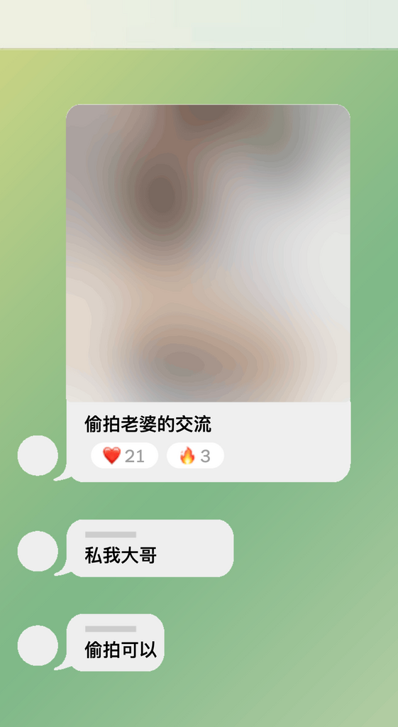 在某个群组中,成员发布裸露或半裸女性照片,声称是自己的现任或前任妻子或女友。近期一条标注“偷拍老婆”的消息包含一名女子穿着睡衣躺卧的照片,腰部以下暴露无遗。