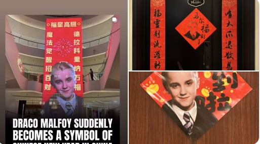 今年春節,中國的壹些家庭門口出現了壹位“不太可能”的新年吉祥物——德拉科·馬爾福(Draco Malfoy)!