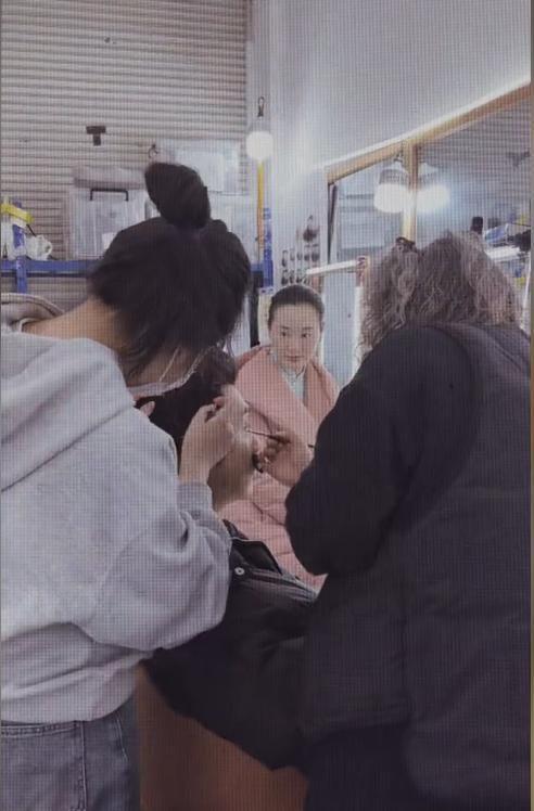 步入劇組化妝間後,林依輪壹邊默念台詞,壹邊任化妝師在額角描摹古韻眉峰。