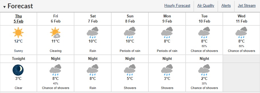 氣象部門表示,周六過後,壹系列較弱的天氣系統仍將持續影響沿海地區。大溫地區整體將進入“天氣不穩定模式”,氣溫回落至接近季節性水平,白天最高氣溫約8攝氏度,夜間低溫在2至3攝氏度之間,略高於往年平均值。