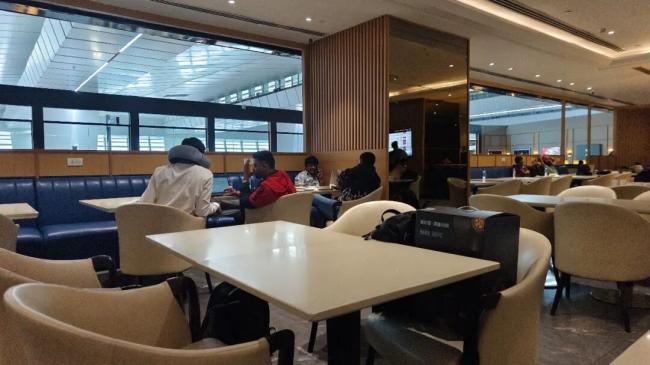 机场贵宾厅Encalm Lounge,面积还算大,装修也不错,硬件上,和国内的机场贵宾厅,不相上下。