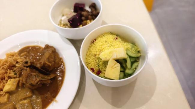 让我想不通的是,鸡肉味道这么差!柴到怀疑人生。正宗印度菜的灵魂在于香料的层次感(逐步递进的姜、蒜、小茴香、丁香),而这一锅显然只是用了工业级的预调制玛莎拉粉。它只有一种单调且横冲直撞的咸辣味,酱汁和肉完全是“貌合神离”——酱是酱,肉是肉,就像德里机场的Wi-Fi和你的手机一样,虽然连在一起,却完全没沟通。