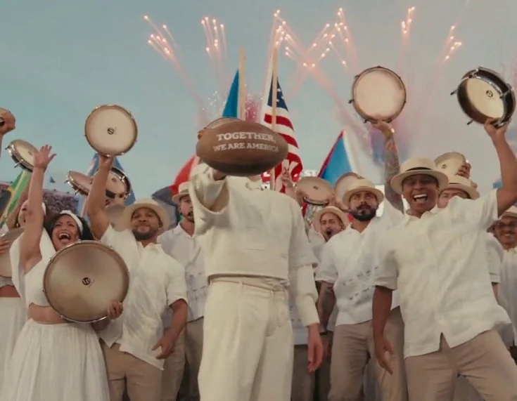坏痞兔手中的橄榄球上面写着“我们团结在一起,就是美洲”,这张图在X上刷屏。
