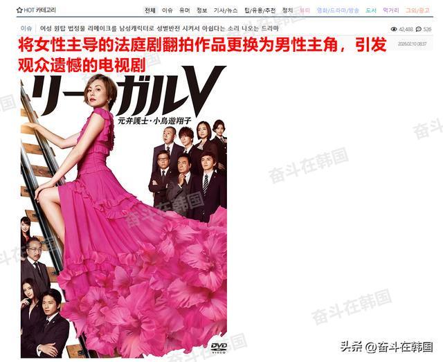 韩国网友们表示:“原作是女性主角,故事里有女性叙事,把这个换成男性,难道是要把这些都砍掉吗”、“非要买女性叙事的作品翻拍,然后改成男性叙事?真无语”、“因为是女律师这部剧才出彩的,如果换成男的不就成了司空见惯的法庭剧了吗”、“男律师不是有《LEGAL HIGH》吗?何必非要这样搞《Legal V》?想用男演员的话就再翻拍一次《LEGAL HIGH》吧”、“ 我们国家明明也有大把合适的女演员可以出演,如果性转的话,那些女主因为自己是女性而感到委屈的情节要怎么处理”……