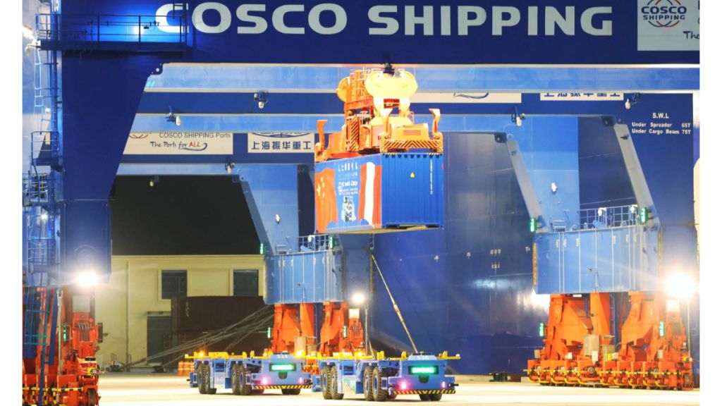 中国在秘鲁投资兴建的钱凯港2024年11月14日盛大启用,图中可看到从货运商到设备商全都是中国企业,有中国远洋运输集团(COSCO)的巨大商标。路透社