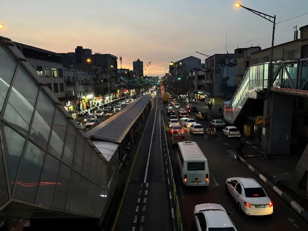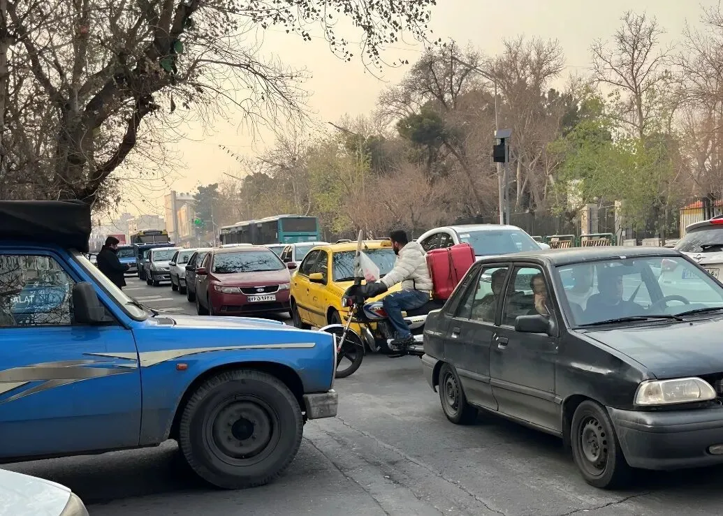 在几乎见不到红绿灯的马路上,灰头土脸的轿车、总是载着至少两人的摩托车、造型奇特的小货车挤成一团,缓慢而顽固地向前蠕动。十字路口的汽车混乱地随意插入和掉头,摩托逆行穿梭其间,烦躁的喇叭声层层迭起,司机几乎不会为过马路的行人减速。这种拥堵、混乱、无序,本就是德黑兰的日常。