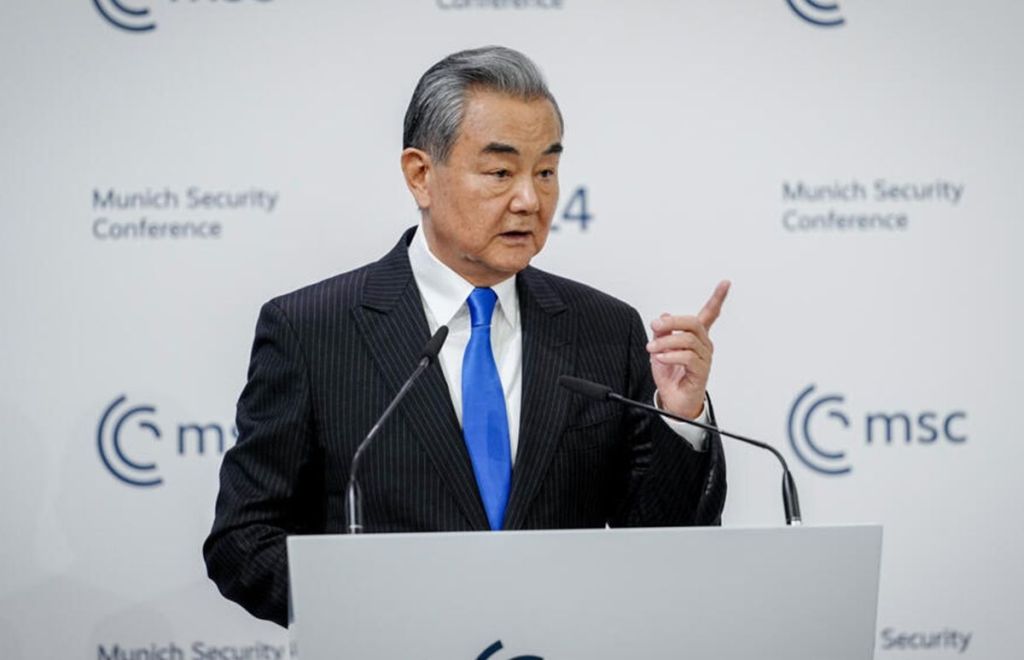 中國外交部長王毅在慕尼黑安全會議上發表講話。(AP)