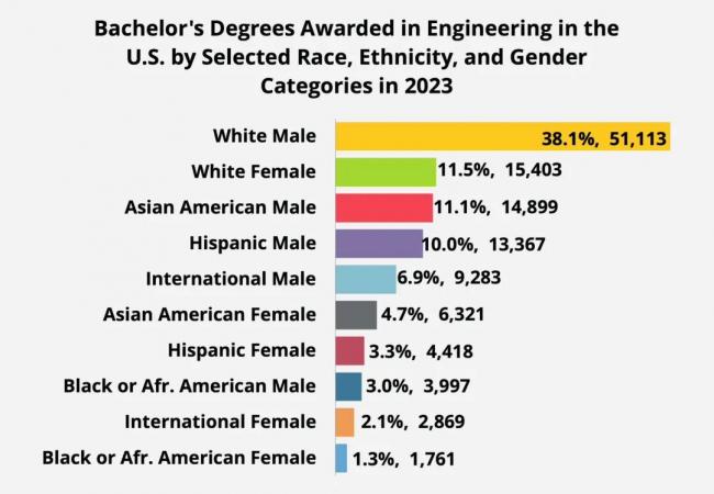 反观中国,130万的数据甚至偏保守。根据中国教育部及《亚洲时报》等机构引用的数据,中国近年每年授予的工科本科学位数量(Engineering Bachelor's degrees)约为130万至140万。如果放宽口径包含专科或STEM(科学、技术、工程、数学)全领域,中国每年的毕业生人数更是高达500万级别。
