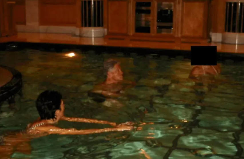 美国司法部去年12月公布的爱泼斯坦案文件中,包含多张和克林顿有关的最新披露照片。其中一张照片显示,克林顿在泳池中与马克斯韦尔及另一人(面部被遮盖)在一起。