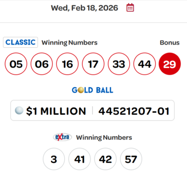 加西網報道:昨晚(2月18日)Lotto 6/49開獎後,加國誕生了兩位百萬富翁。