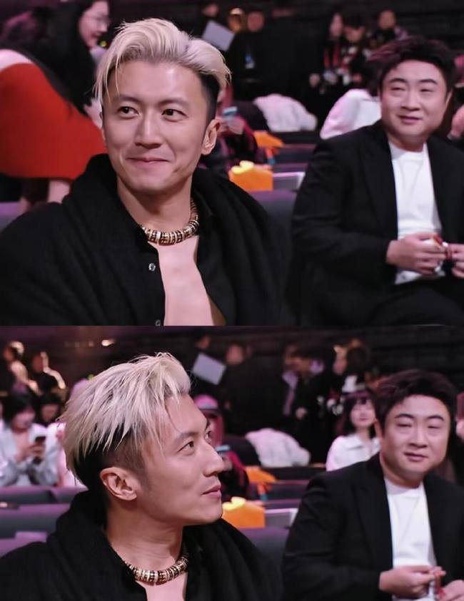 就在王菲登上春晚的幾天前,2026年2月7日,謝霆鋒剛在微博之夜的紅毯上炸翻全場。 他染著顯眼的黃發,黑色深V襯衫的扣子解開大半,緊實的胸肌線條若隱若現。 零妝感的生圖被傳到網上,網友驚歎“這狀態哪像當爹的人,說他25歲我都信”。 和他同場的吳京多次看向他的造型,眼神裡都是欣賞。