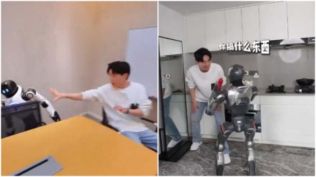 大陆播主实际测试四款所谓“最先进”的国产机器人,结果让人笑掉大牙。(网络视频截图)