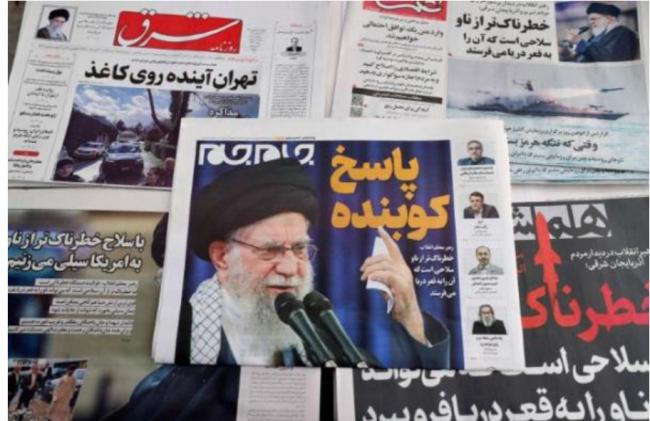 18日,德黑蘭的壹處報攤擺放著刊登有伊朗最高領袖阿亞圖拉·阿裡·哈梅內伊照片的伊朗日報。/AFP,韓聯社