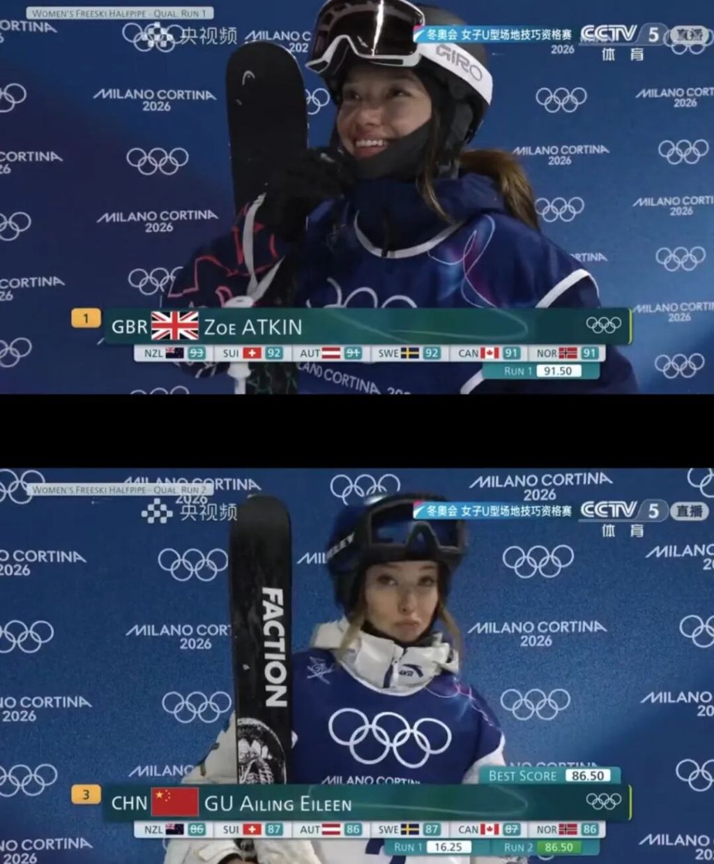 冬奥结束了,谷爱凌和对手佐伊·阿特金的故事被各种挖出来...