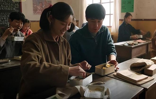 妻子离世带着三个孩子生活的庄先进(田雨饰)穿着磨损的工装,布料上沾着油污,捧着搪瓷茶缸、端着铝制饭盒,完全融入70年代末的背景。