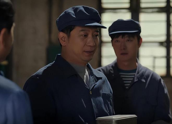妻子离世带着三个孩子生活的庄先进(田雨饰)穿着磨损的工装,布料上沾着油污,捧着搪瓷茶缸、端着铝制饭盒,完全融入70年代末的背景。