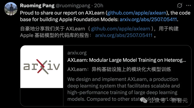在苹果期间,庞若鸣带领团队也曾做出不少亮眼的成果,比如多模态大模型MM1、苹果AI基础模型等。