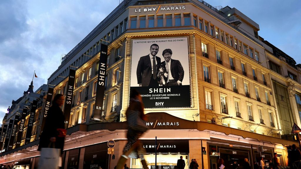 2025年11月3日,中國快時尚電商品牌Shein即將入駐巴黎BHV Marais百貨前夕。(Reuters)
