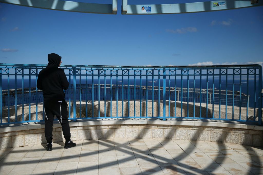 2026年2月27日,壹名人士在以色列北部海法(Haifa)等待「福特號」(USS Gerald R. Ford)航空母艦抵達。(Reuters)