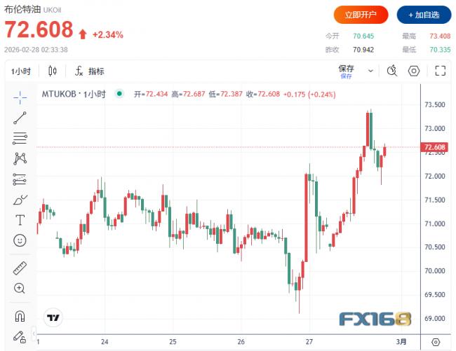 受地緣政治風險溢價推動,國際油價周伍大漲約3%。布倫特原油期貨上漲至73.408美元/桶高點,WTI原油上漲至67.83美元/桶,均創下數月新高,並有望錄得周線漲幅。